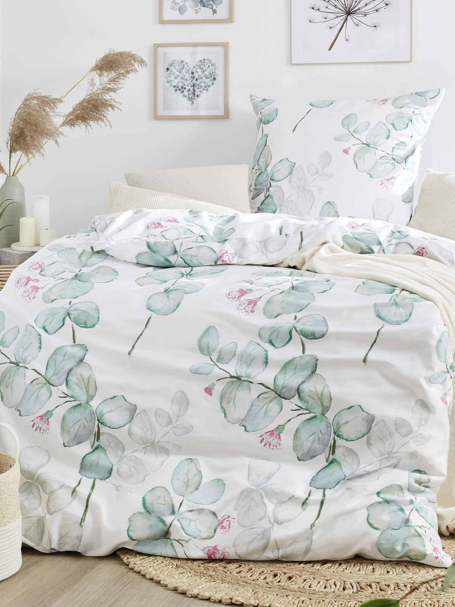 In der Dekoration ist Eukalyptus zur Zeit der absolute Trend. Deshalb haben wir ein entsprechendes Design für diese Bettwäsche kreiert. TANAMI wird aus samtweichen Baumwoll-Satin gefertigt. Mit Qualitäts-Reißverschluss. Oeko-Tex Standard 100.