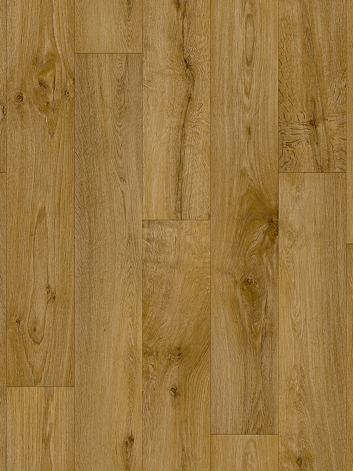 Holzdekore, die wie echte Holzdielen aussehen. Nur dieser Vinyl-Bodenbelag lässt sich leichter verlegen. Er ist strapazierfähig (Klasse 22), leicht zu pflegen und für Räume mit Fußbodenheizung geeignet.